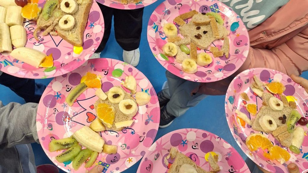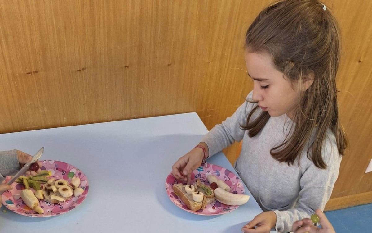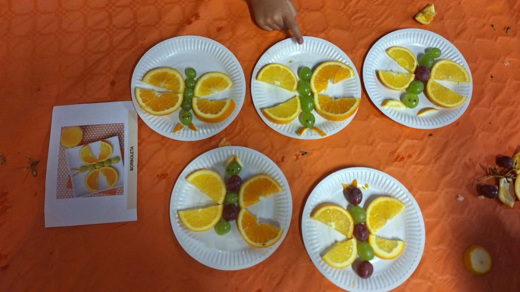Os alunos do primeiro ciclo preparam os pratos coloridos e cheios de imaginação e os alunos do pré-escolar ouviram atentamente uma história relacionada com a descoberta de novas frutas e degustaram uma das frutas da época, o dióspiro.