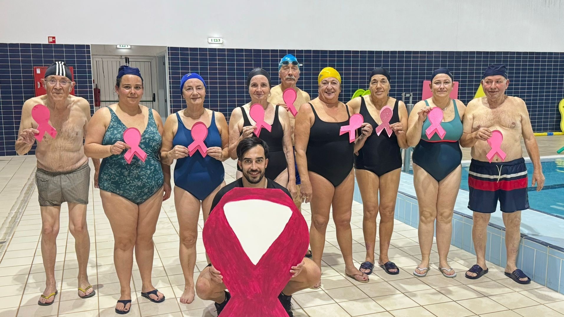Os professores, alunas do programa Vivafitness e os utentes das piscinas municipais que frequentam as aulas de hidroginástica, associaram-se ao movimento “Outubro Rosa” para reforçar a importância da prevenção e do diagnóstico precoce do cancro da mama.