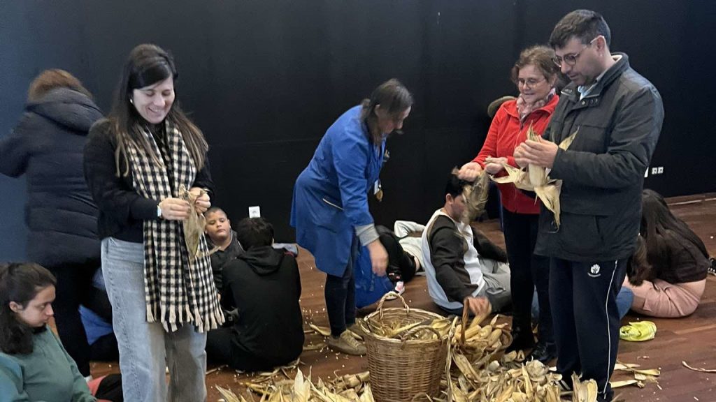 A escola recriou uma pequena desfolhada, colocando os alunos especiais na atividade, que antigamente punha os jovens em busca do milho-rei ou rainha para poderem dar um beijo à namorada.