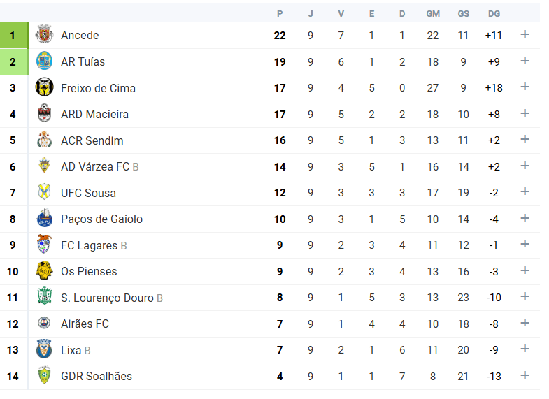 Associação Desportiva de Ancede reforça liderança ao bater o Sendim – confira a classificação