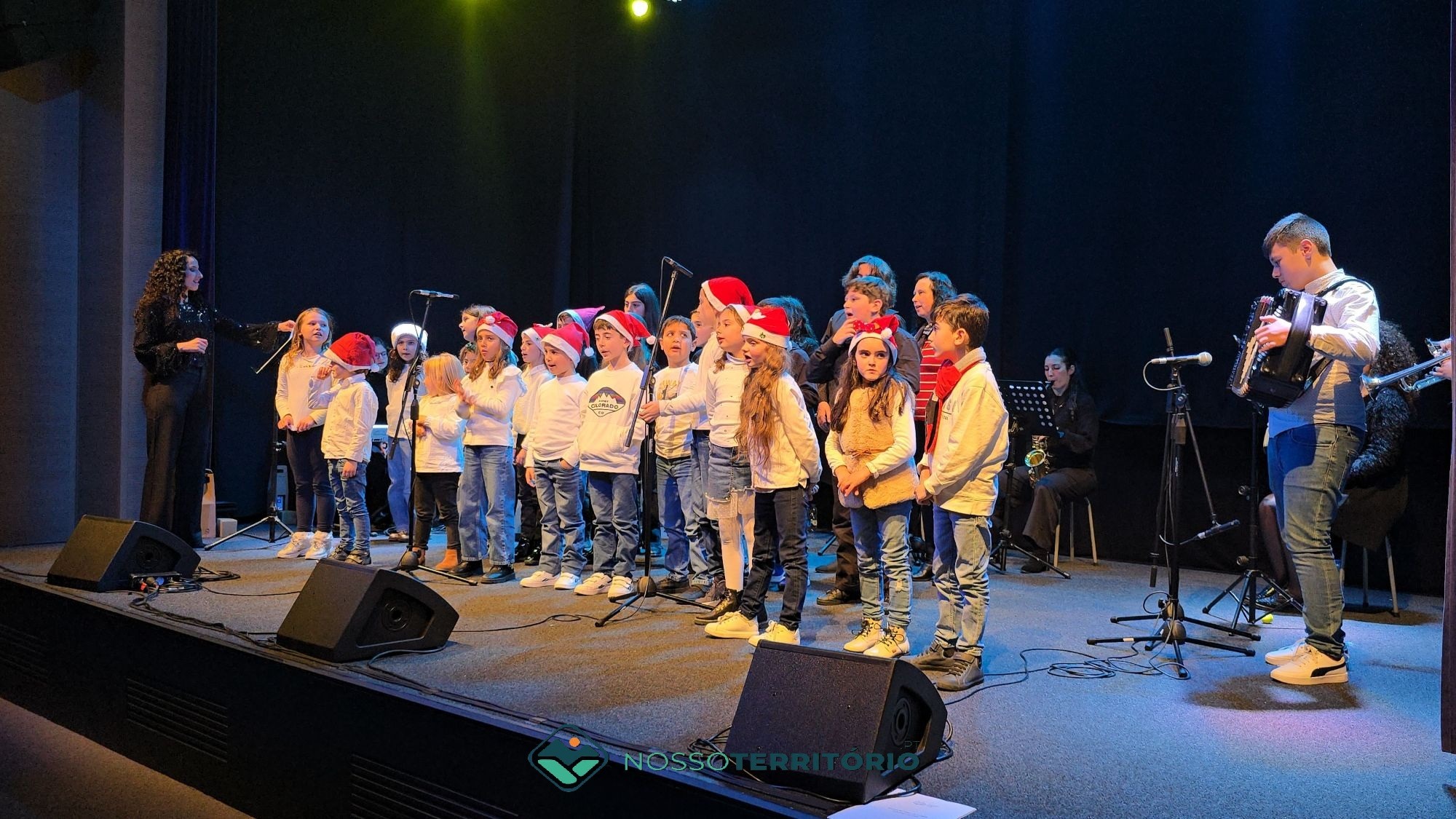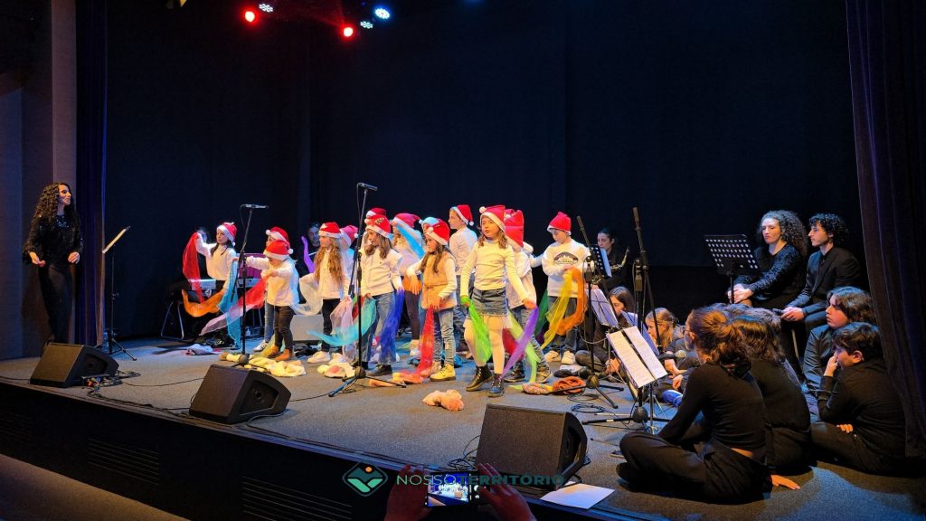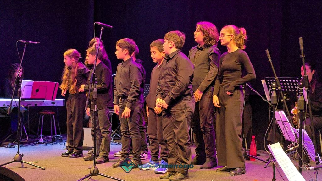 Os cerca de 60 alunos juntaram-se aos professores e brindaram o público com vozes afinadas e instrumentos bem trabalhados.