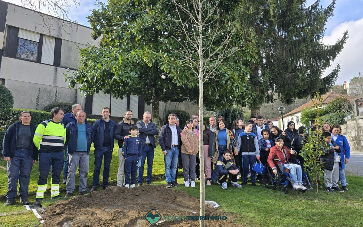 A árvore foi plantada provisoriamente naquele espaço, mas será mais tarde transplantada para o futuro parque de lazer urbano na vila de Baião.