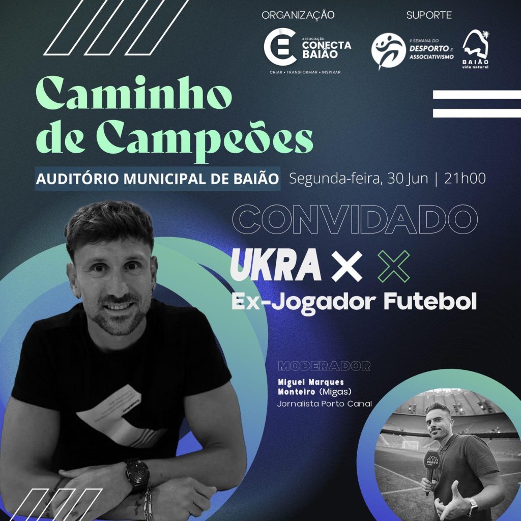 O ex-jogador de futebol Ukra vai estar em Baião, na segunda-feira, dia 30 de junho, para uma conversa com jovens do concelho, no âmbito da iniciativa “Caminho de Campeões” da Associação Conecta Baião.