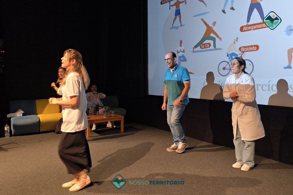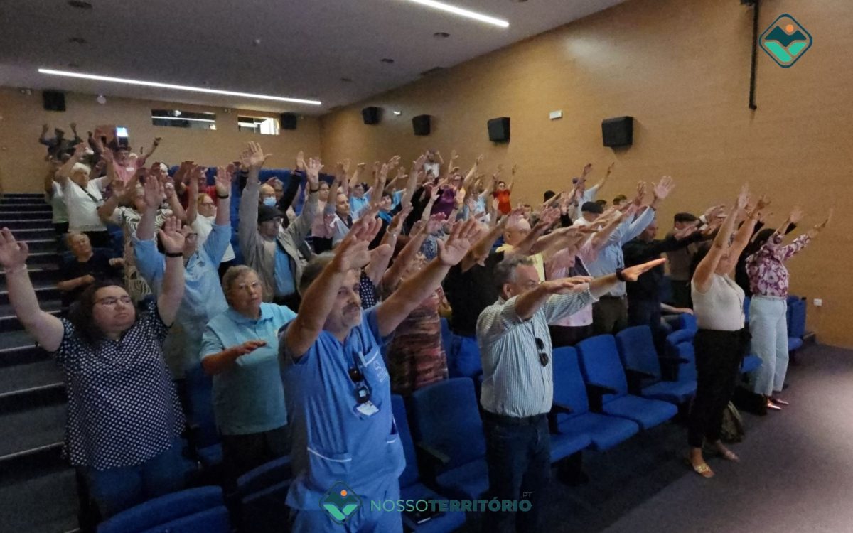 Foram passadas, para o público, algumas das medidas que ajudam a evitar AVC, entre elas o exercício físico, o que motivou os presentes a acompanhar as enfermeiras e enfermeiros da UMS em exercícios a som da música.