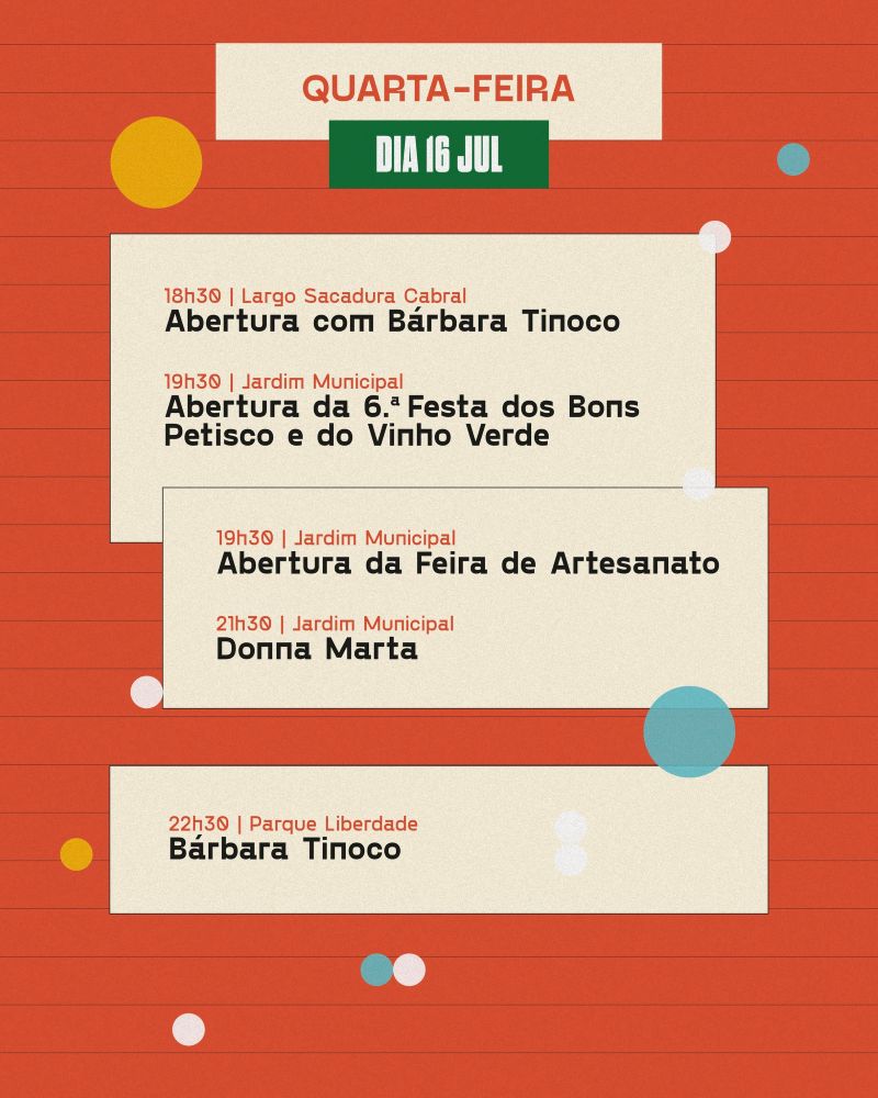As Festas do Marco 2025 arrancam na quarta-feira, dia 16 de julho, com Bárbara Tinoco a subir ao palco principal, abrindo cinco dias de festividades.