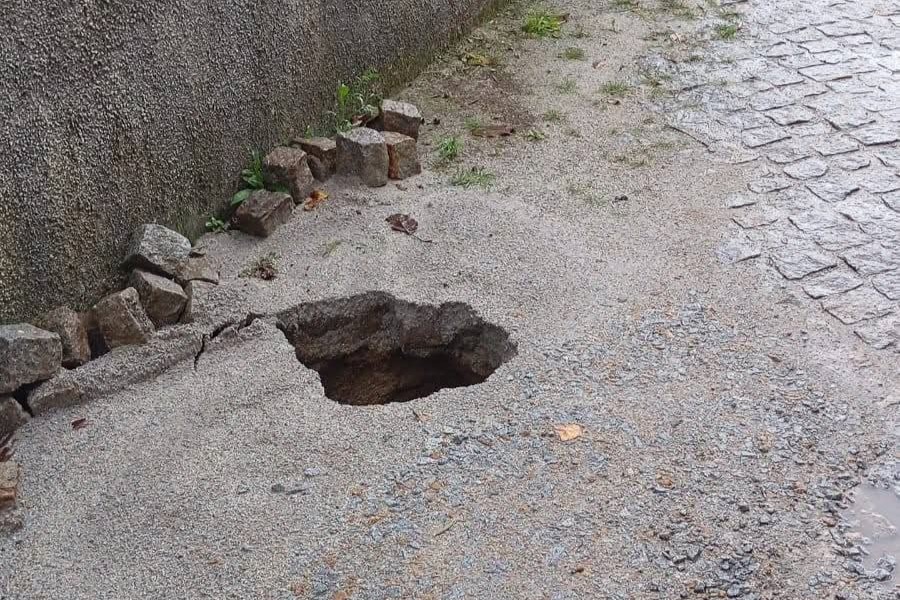A par disso, a intensidade da chuva tem entupido aquedutos, rebentado estradas em paralelo e há muitos buracos na rua. Sérgio Monteiro diz que a “prioridade” é atender as situações mais urgentes, nomeadamente em vias onde passa o autocarro escolar.