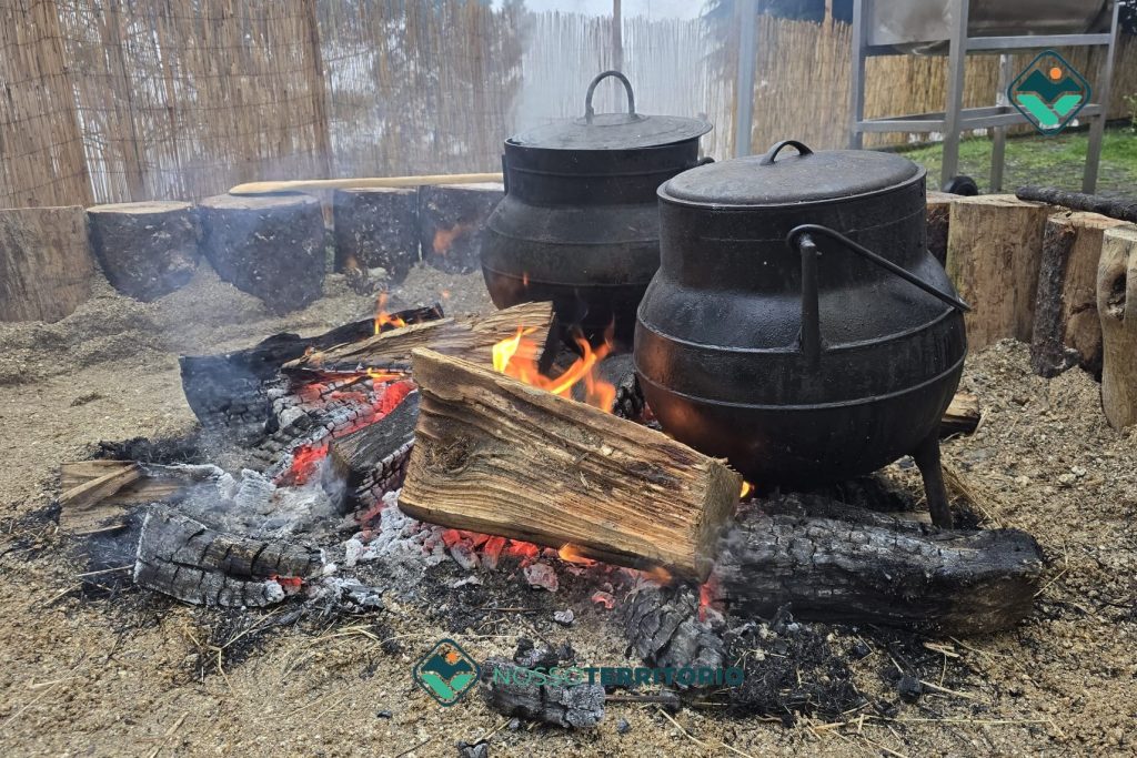 Do pote para as tigelas seguiu a sopa e do assador comunitário saíram alheiras e chouriços assados, bem regados com os vinhos de Baião.